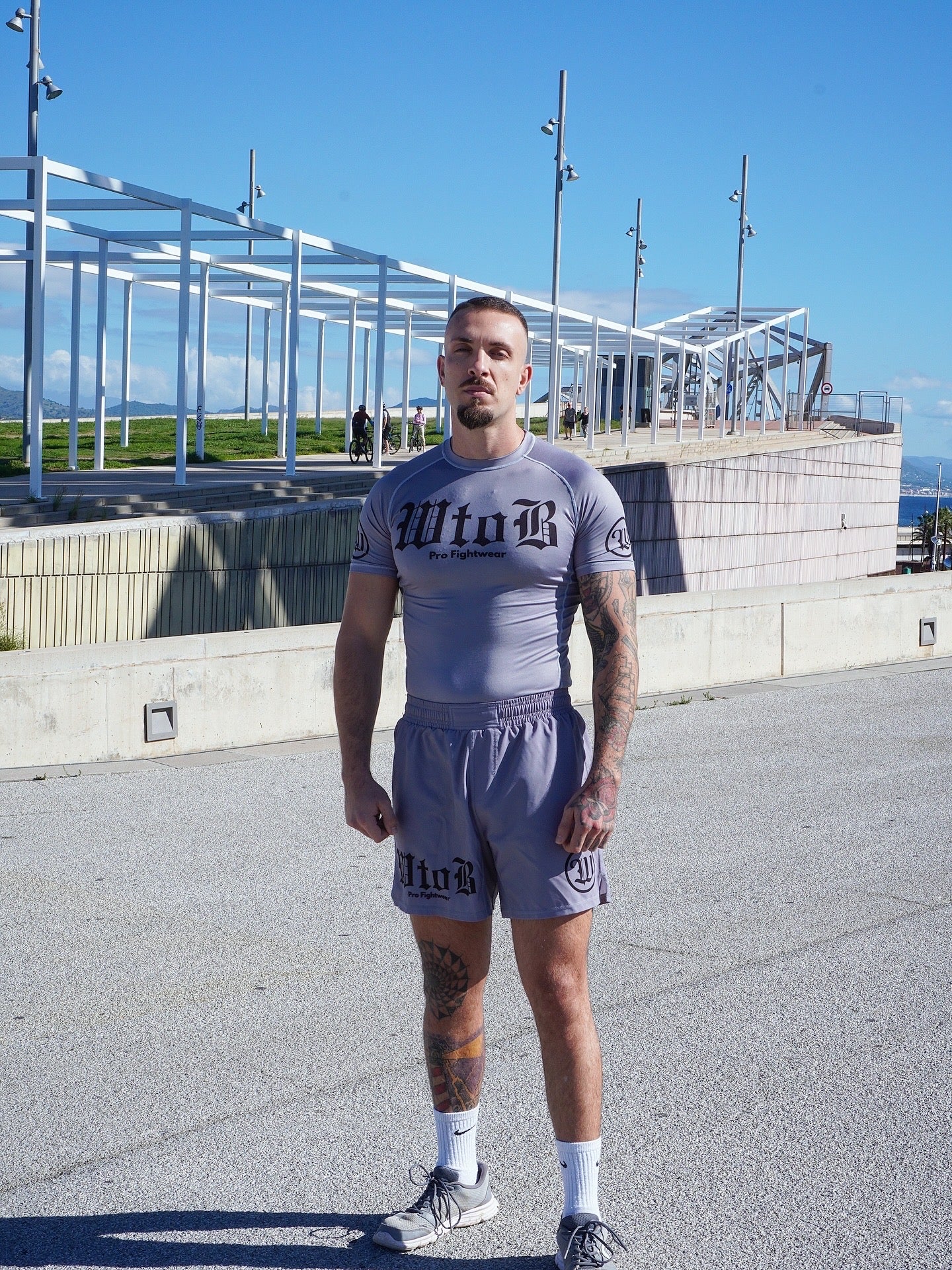 Entrena con confianza con este short gris mate de alto rendimiento. Diseñado para atletas de BJJ, MMA y grappling, combina estética potente con tecnología textil de compresión y resistencia.